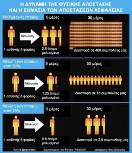 Είναι επίσης πολύ βασική η διατήρηση αποστάσεων μεταξύ των ατόμων, όπως τονίζει και ο καθηγητής Πολιτικής της Υγείας, Ηλίας Μόσιαλος, με ένα εξαιρετικό γράφημα στο λογαριασμό του στο facebook (εικ.2).